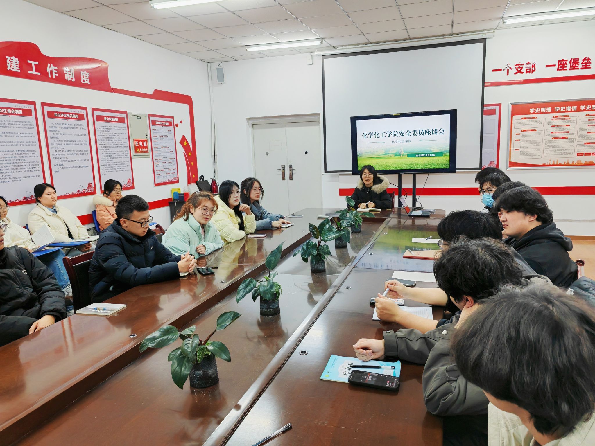 安全无小事,枝叶总关情。为进一步强化学生安全意识,深入排查校园安全隐患,畅通安全信息反馈渠道,12月10日19:00,化学化工学院于行知楼316会议室组织召开全院安全委员专题座谈会。会议由2023级辅导员、团总支书记白婷主持,围绕近期校园内外广泛关注的安全议题展开深入讨论。