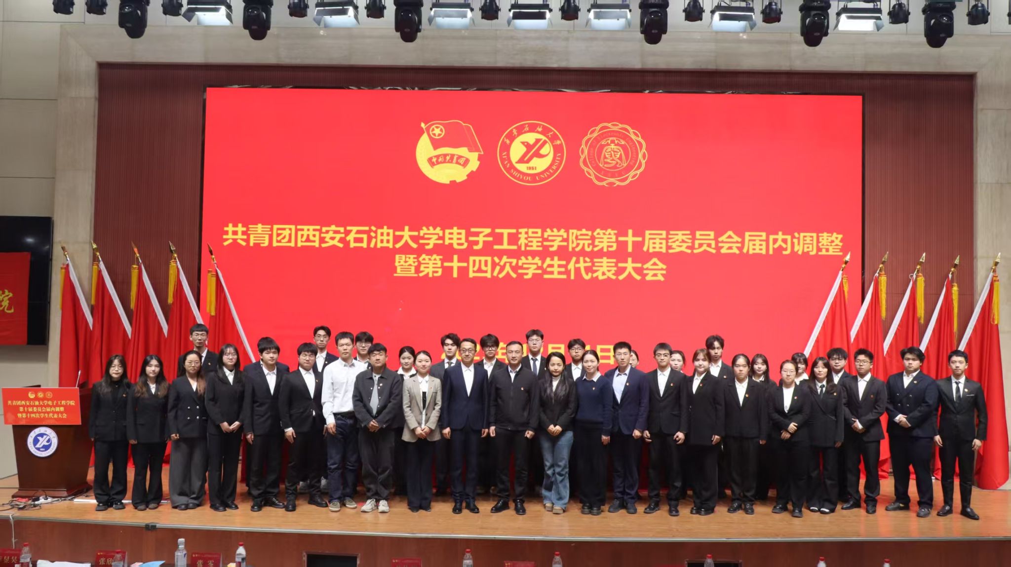 12月11日下午,共青团Beat365唯一官方网站电子工程学院第十届委员会届内调整暨第十四次学生代表大会在鄠邑校区弘石学术报告厅召开。校团委副书记王军策、学院党委副书记芮执根、学院团委书记钱宇航,各年级团总支书记、各兄弟院系学生会主席团代表、学生代表共计260余人参加会议。