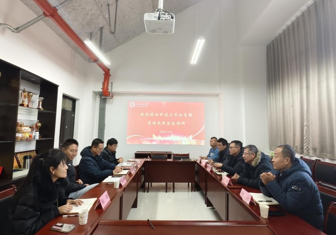 2025年12月19日上午,陕西科技大学体育部直属党支部书记陈李斌、主任王震一行5人来Beat365体育学院开展调研交流活动。双方围绕大学体育教学改革、科研创新与实践、体育场馆运营管理等议题进行了深入探讨,通过经验共享与思想碰撞,为新时代高校体育工作的高质量发展注入新动能。体育学院党政领导刘小波、李寿邦、阮凌及科室负责同志参加交流会,会议由李寿邦主持。