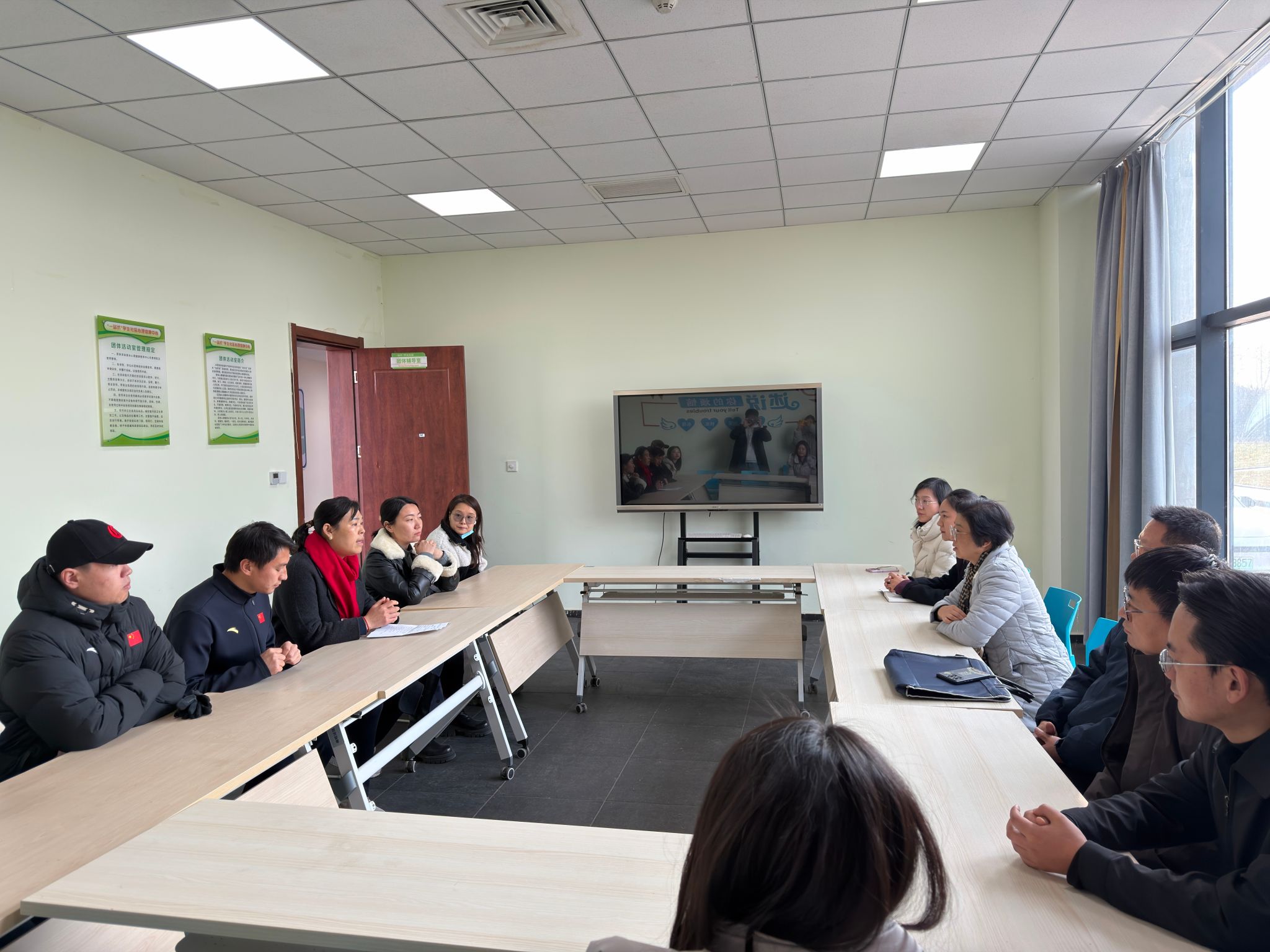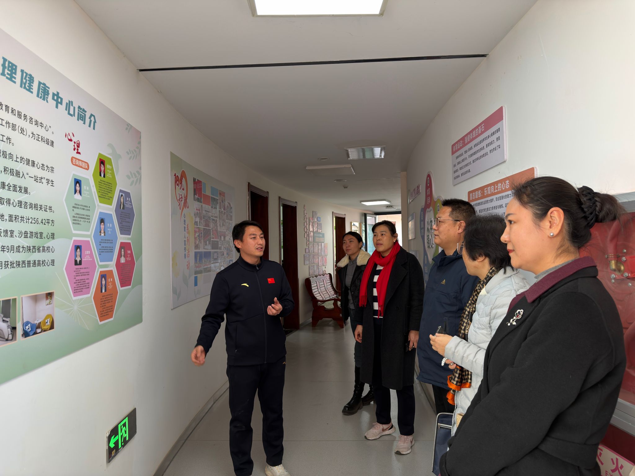 在西安体育学院学工同仁的陪同下,Beat365一行首先参观了“一站式”学生社区心理健康教育中心。中心功能齐全、环境温馨,将心理健康教育、咨询干预、团体活动、放松减压有机融合于学生生活区域,实现了心理育人工作的前置与下沉。