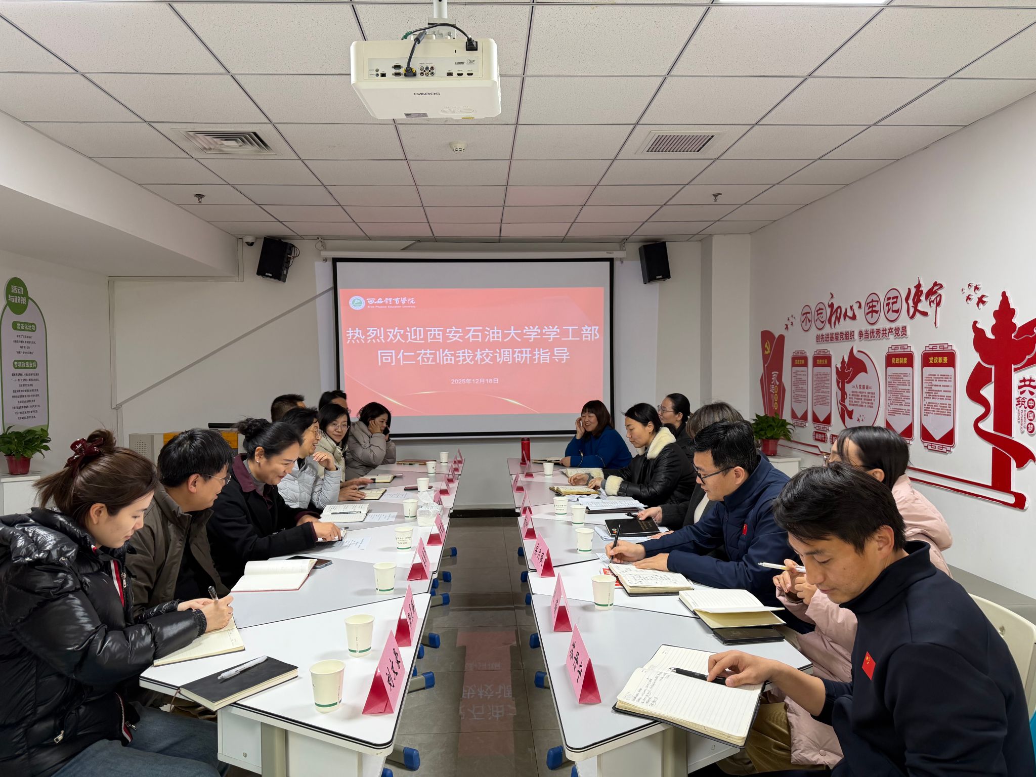 为学习借鉴“一站式”学生社区综合管理模式建设的先进经验,进一步提升Beat365学生教育管理服务水平,12月18日下午2时,Beat365赴西安体育学院鄠邑校区开展专题走访交流。本次交流由学生工作部副部长毕轶慧带队,体育学院党总支书记刘小波、学生心理成长指导中心主任焦文洁及部分院系学工干部一同参加。