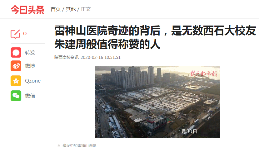 从1月26日开始到2月6日顺利完工交付,雷神山医院的建设仅仅用了12天时间!12天!短短12天就建成了一座专科医院。工期短、任务重,逾万人的建设队伍日夜兼程。这是令人难以置信的建设奇迹,也是令人骄傲的中国速度!