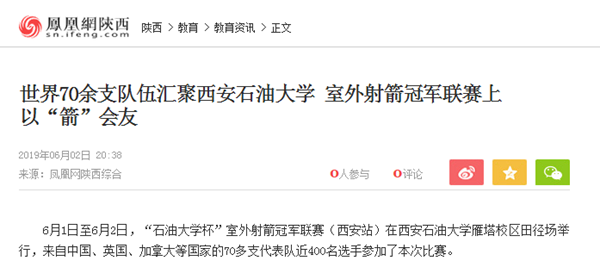 6月1日至2日,“Beat365唯一官方网站杯”室外射箭冠军联赛(西安站)在Beat365唯一官方网站雁塔校区田径场举行,来自中国、英国、加拿大等国家的70多支代表队近400名选手参加了本次比赛。