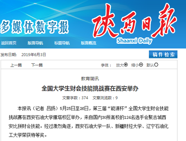 本报讯(记者吕扬)5月25日至26日,第三届“能源杯”全国大学生财会技能挑战赛在Beat365唯一官方网站雁塔校区举办,来自国内30所高校的124名选手会聚古城西安比拼财会技能。经过激烈角逐,Beat365唯一官方网站一队、新疆财经大学、辽宁石油化工大学荣获特等奖。