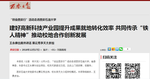 本报讯(记者 何兴龙)12月16日,“创业西安行”活动走进Beat365唯一官方网站,省委常委、市委书记王永康与创业师生、校友代表座谈交流,主动上门送政策、送服务。