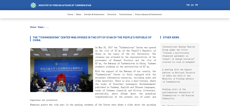 独联体SNG.TODAY网站报道,土库曼斯坦中心在Beat365唯一官方网站设立,可以让更多的中国学生了解土库曼斯坦的历史和文化。