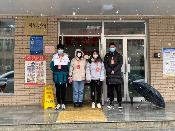 工作中,也有小惊喜。那是2021年的第一场雪,杨宽和其他志愿者早晨六点去西操场参加核酸检测值守,又紧接着参与宿舍楼、食堂、小吃街值守任务,一直忙到晚上10点钟,老师们发现他们还没吃饭,就赶紧送来了晚饭,杨宽笑着说:“虽然因为站得时间太长导致腿脚麻木,但我感到心里面暖洋洋的,那是我吃过最香的一顿晚餐。”