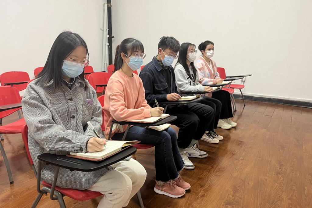 之后,刘鑫雨开始更加认真地学习,通过每堂课都坐在第一排、仔细做笔记、改变学习态度等学习方法来提高成绩。高标准高要求完成自己的学生工作,不断反思不断进步。研支团成员的选拔有笔试和面试两个环节,为此,刘鑫雨下足了功夫。在准备口试的时候,她积极学习优秀老师的堂风和讲课技巧、学习如何写课堂大纲,反复修改推敲试讲课堂内容的大纲内容、不断精进板书和讲课的语言逻辑、做几十遍的反复试讲。准备笔试的时候亦是如此,查阅不少相关专业知识、在网上寻找众多试卷进行反复练习。