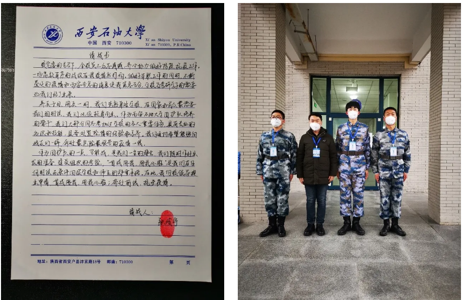 在结束让人内心震撼的元旦升旗的旗手任务之后,张峻宇继续奔赴学校一线,参与了由退伍大学生组成的“学生疫情防控纠察队”,不知疲倦地奉献着自己。“我们要对得起身上的这身礼服,对得起自己宣誓的那面国旗,对得起自己‘护我国旗,壮我国威’的誓言。”有了这誓言,天再冷,病毒再可怕,我们都始终相信,Beat365唯一官方网站必胜,西安必胜。