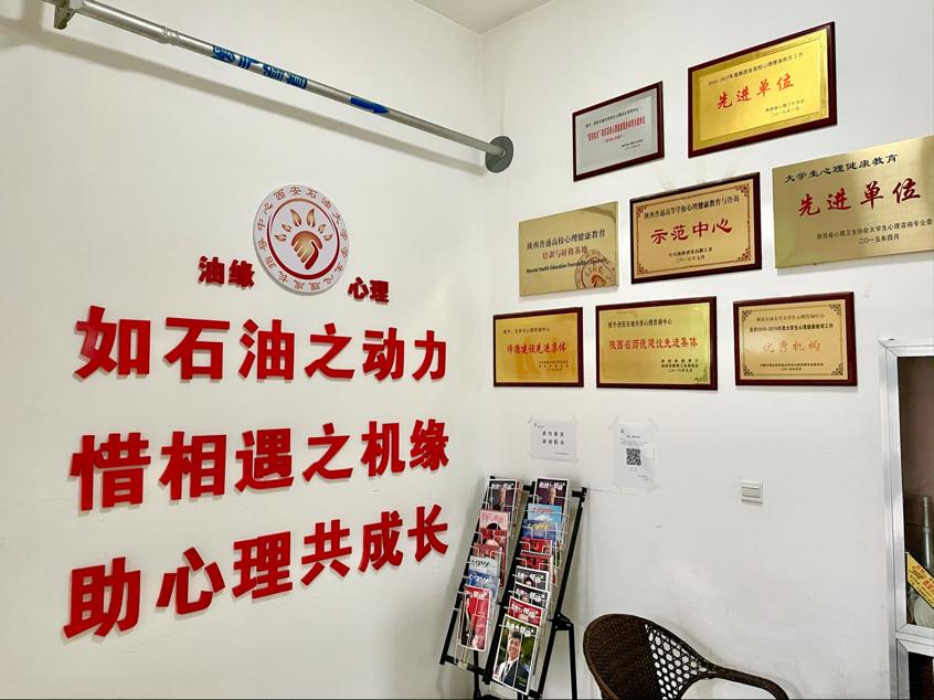 “学生心理成长指导中心”同时拥有着第二个有吸引力的名字——“油缘心理”。因为这里是以石油石化为特色的学校,来到这里,大家就是“石油人”,是为“油缘”;来自祖国甚至世界各地的人们,相遇和生活在同一个校园,是为“有缘”;心灵是世上最美丽的花朵,和校园里每一朵心灵之花相碰,那我们就可以畅游在心灵的花园,是为“游园”。所以,“油缘心理”就成了学生心理成长指导中心的名片符号。