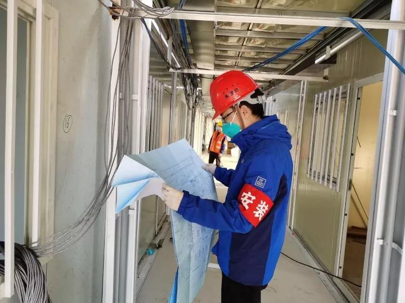 来到现场,朱建周负责雷神山医院施工方的设计管理工作,是设计院与施工一线之间的桥梁。平日,他梳理审核中南院设计的图纸,细化标高、位置、洞口等数据,找出问题之后跟班组交底,解决图纸中的疑问。这些事项弄好之后,他还要再跟物资对接、订货,交代现场施工。