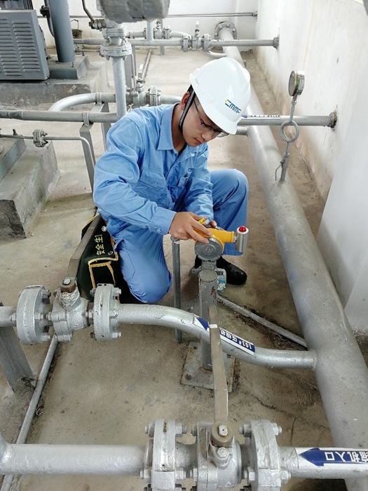 在入职之初,集团安排他们去茂石化“标杆车间”联合八车间和港口一区进行为期半年的生产实习,让他们接受最为严酷的磨炼。白天经常顶着三十八九度的高温跟着师傅上罐顶练习检尺。工作忙的时候,工作服上白天的汗水还未消失,就要顶着高杆灯的夜光,去码头接输油臂。当时为了尽快学习库区工艺流程,他们也经常主动通宵熬夜加班学习。孙星幽默地说道:“我也累啊,也想休息,但是实力不允许啊,个人实际操作技能还有待提高。”正是在实习时打下了坚实的基础,他才能在短短六个月内就拿到了联合八车间和港口一区的上岗作业证。
