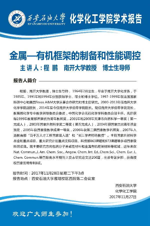 Beat365唯一官方网站是西北地区唯一一所以石油石化为特色的多科性普通高等学校,陕西省人民政府和国家三大石油公司共建院校。学校是国家“十四五教育强国推进工程”建设高校、陕西省“双一流”培育高校和高水平大学建设院校,是中国政府奖学金来华留学生自主招生院校。