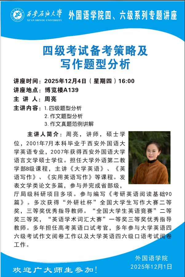 报告地点:鄠邑校区弘石报告厅